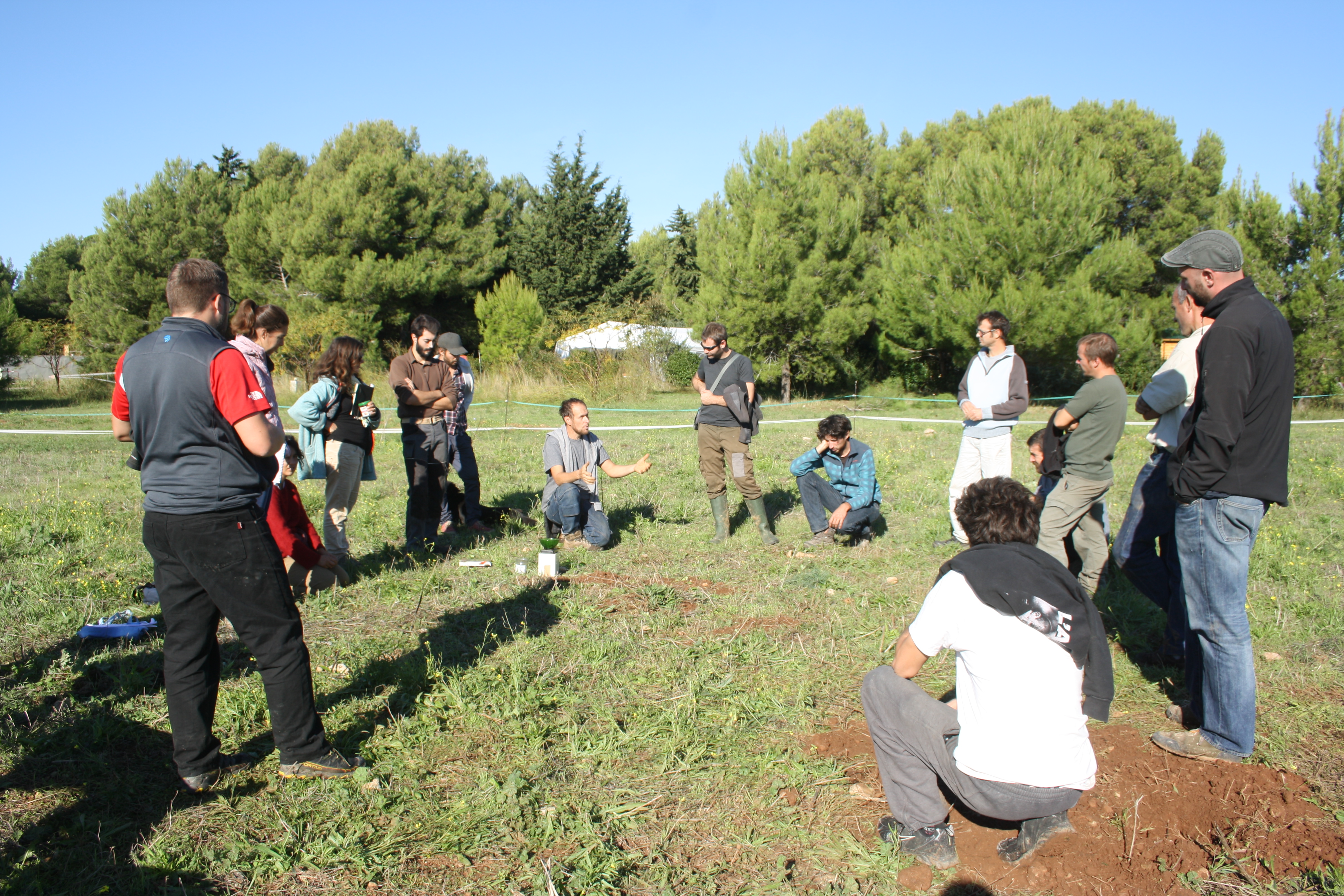 Sur un inter-rang sur deux ont été semés des engrais verts (phacélie et moutarde)et sur les autres inter-rangs ont été mis en place de manière séparée 3 types de légumes (fèves, pommes de terre et courges butternut).